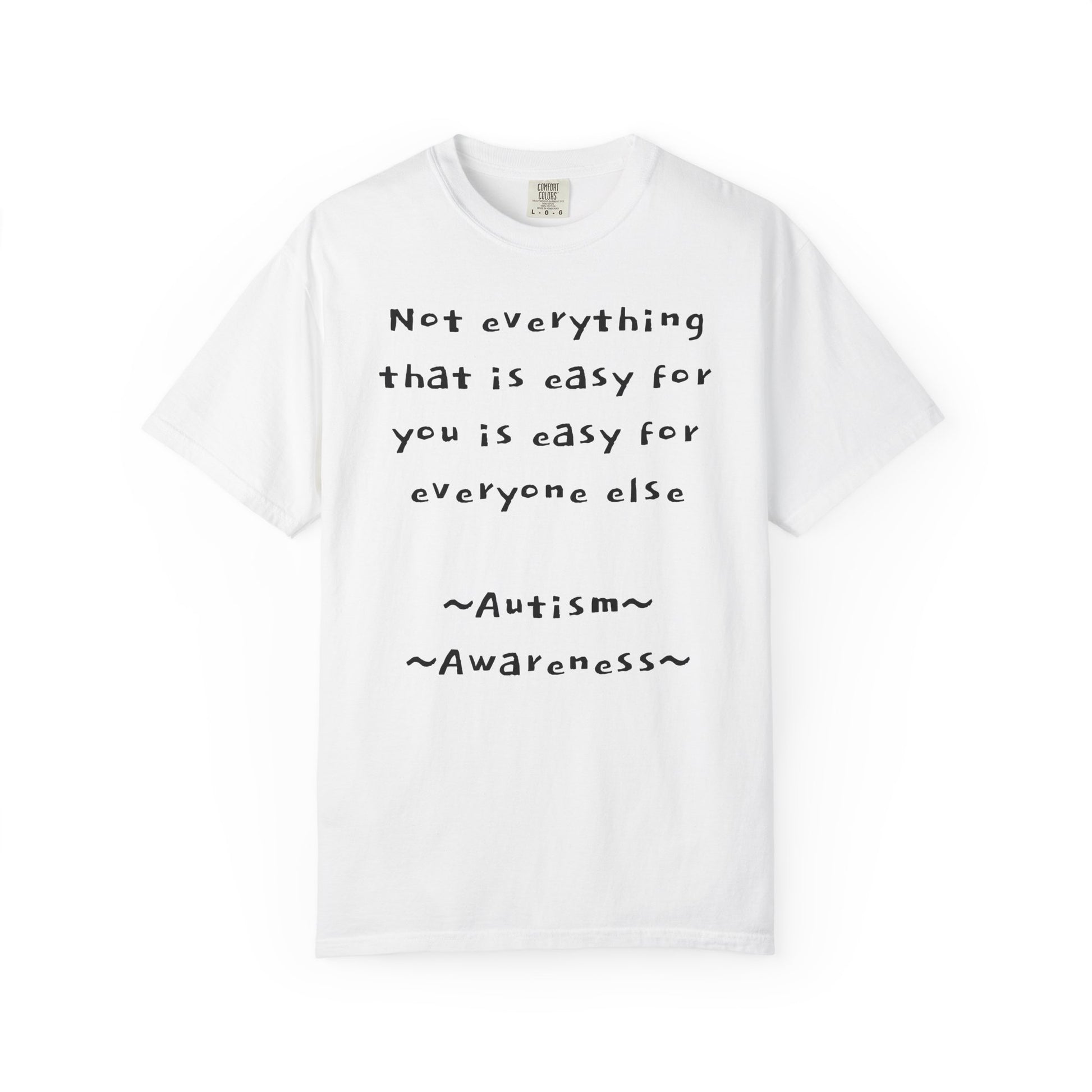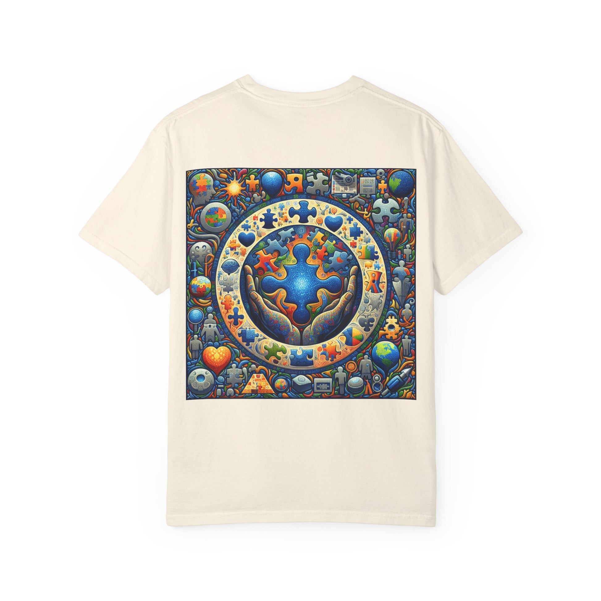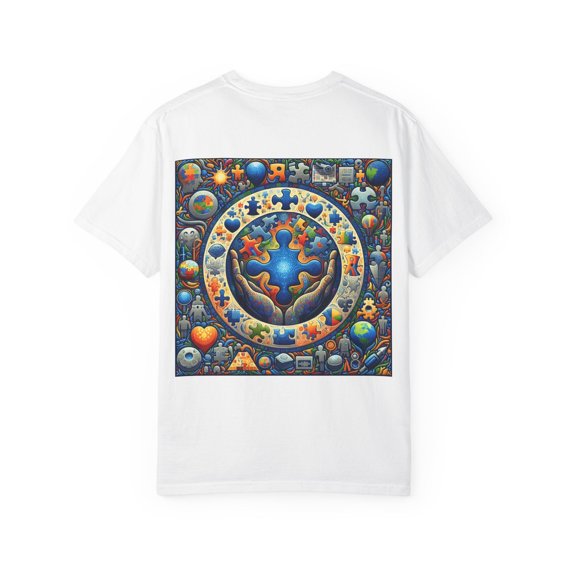 A comfortable and classic T-Shirt featuring puzzle art on the back and an autism awareness saying on the front. Perfect for raising awareness and showing support. Ideal for adults who care about autism advocacy and want to make a statement. Relevant for Autism Awareness Month, World Autism Awareness Day, and everyday wear.